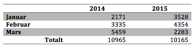 En sammenligning med antallet ankomster i årets tre første måneder i 2014 viser at antallet båtflyktninger er nesten identisk (her har vi bare totale tall).