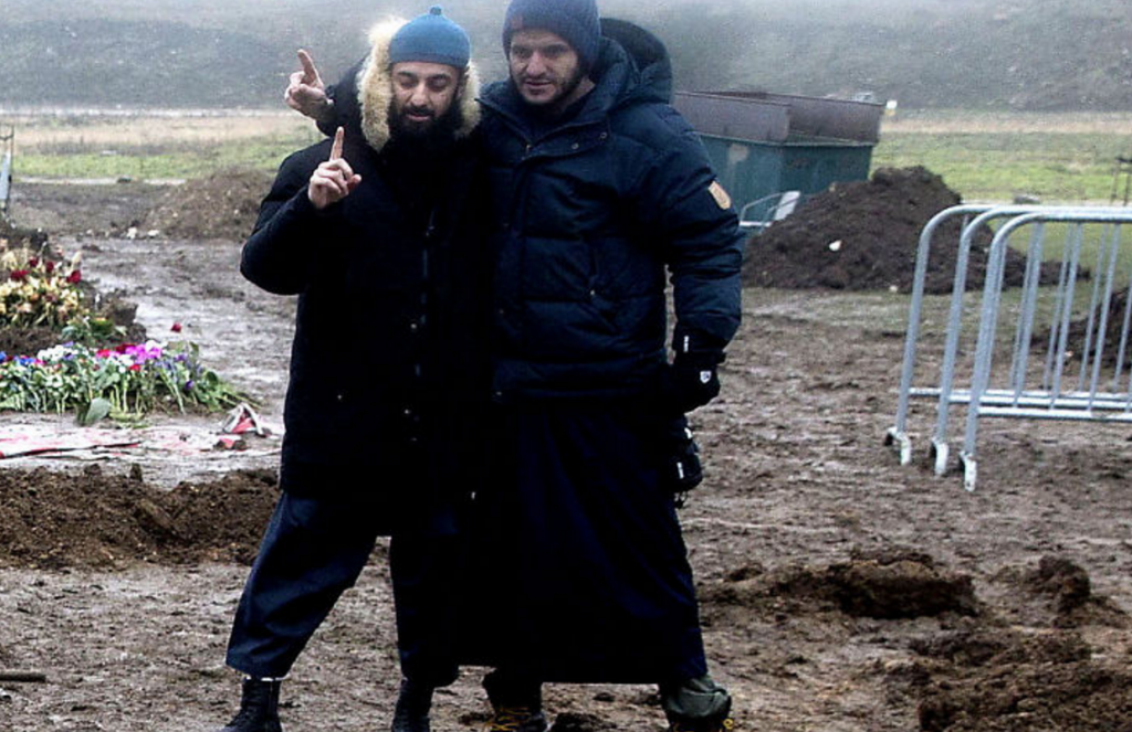 Ubaydullah Hussain og et annet medlem av Profetens Ummah feirer El-Hussein etter att han er gravlagt.