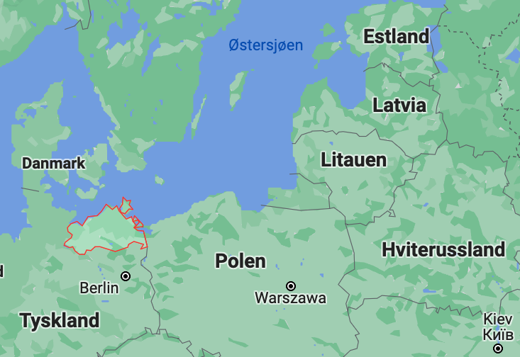 Mecklenburg-Vorpommern markert i rødt