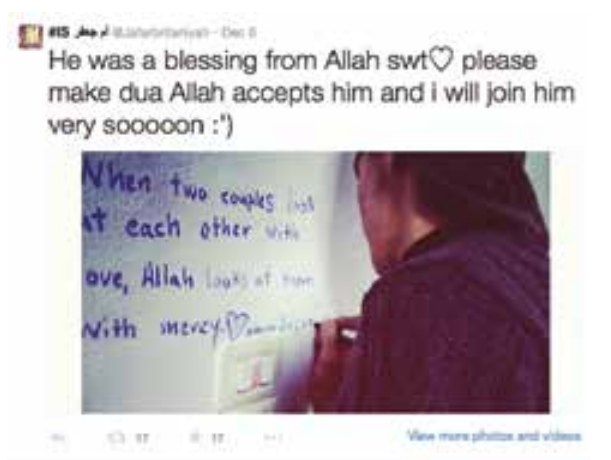 Tvillingene ble mer og mer ekstreme under oppholdet i Syria. De feiret 9/11 på Twitter, det samme da terrorister angrep Charlie Hebdo i 2015 og 11 personer ble drept. De var notorisk opptatt av «ummah», det muslimske verdensomspennende fellesskapet, og notorisk opptatt av å stemple ikke-muslimer som «kuffar», altså vantro uten menneskelig verdi. Tvillingenes identitet var helt og holdent knyttet til ummah, sier forskere bak rapporten «Till Martyrdom do us appart (se om tvillingene fra s. 19). De dehumaniserte oss andre. De så jihad som en religiøs pålagt plikt. Muslimer som ikke valgte jihad ble omtalt som «skamfulle». Dette tolker forskerne som en «særlig sterk rekrutteringstaktikk».