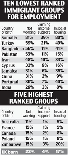 Rapporten viser at somaliere er den gruppen som gjør det desidert dårligst i Storbritannia. Mindre enn en av fem er i jobb, og fire av fem lever i kommunale boliger eller får bostøtte.