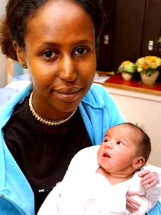Kadra Yusuf med sin egen datter, som ikke er adoptert fra Afrika
