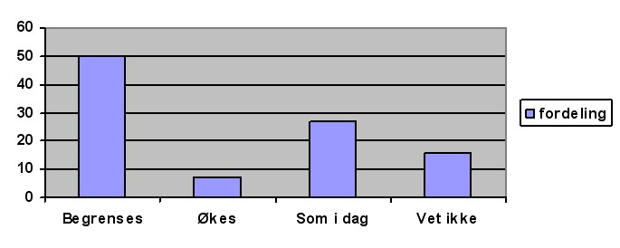 Hva gjelder innvandring fra ikke-vestlige land mener et flertall på 50 prosent at den bør begrenses, mens 27 prosent mener den bør være som i dag. Kun 7 prosent mener innvandring fra ikke-vestlige land bør økes, mens 16 prosent ikke har noen formeningen om saken.