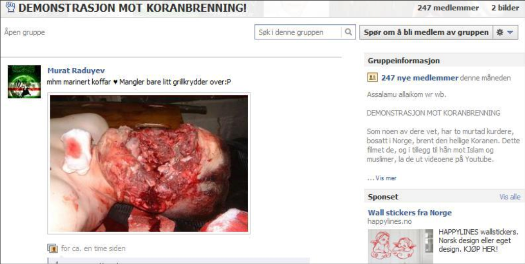 Den ene kurderen er hengt ut på facebookgruppens vegg med bilde og navn. Under bildet skriver et av medlemmene: