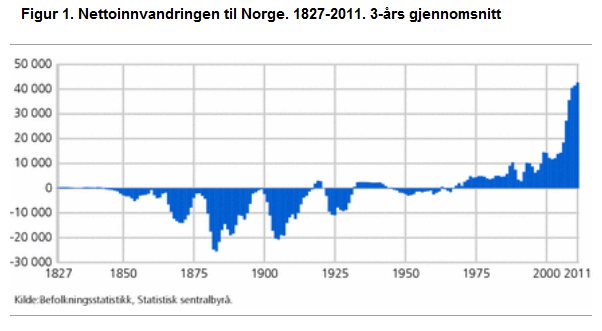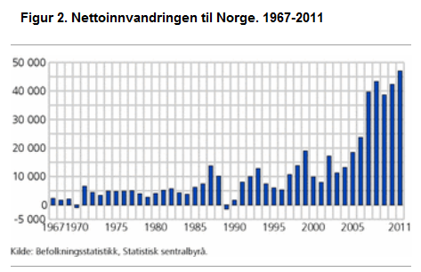 Som Vassenden skriver: Enkelt sagt tilhører Norge den tidelen av land i verden som har den høyeste nettoinnvandringen i forhold til folketallet. Innenfor Europa er det bare ett eller to land som kan oppvise høyere nettoinnvandring. Tidligere har Norge ligget nærmere gjennomsnittet for verdensdelen. Dette tilsier at innvandring til Norge nå kan nå måle seg med nivået vi for tida finner i de klassiske innvandringslandene som USA, Canada og Australia.