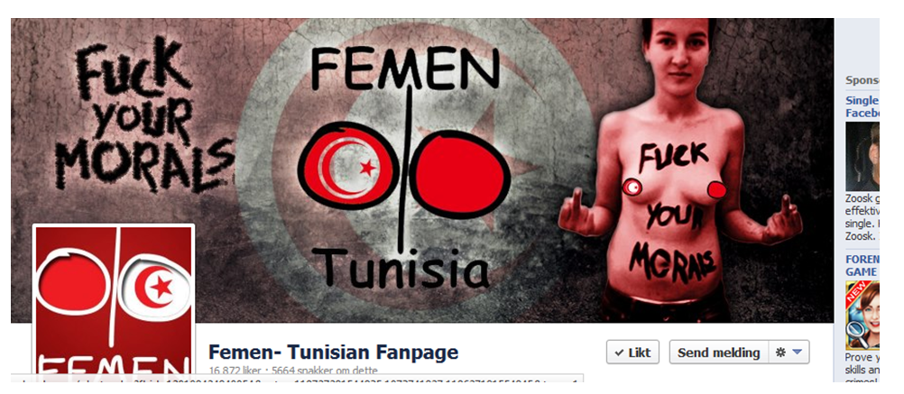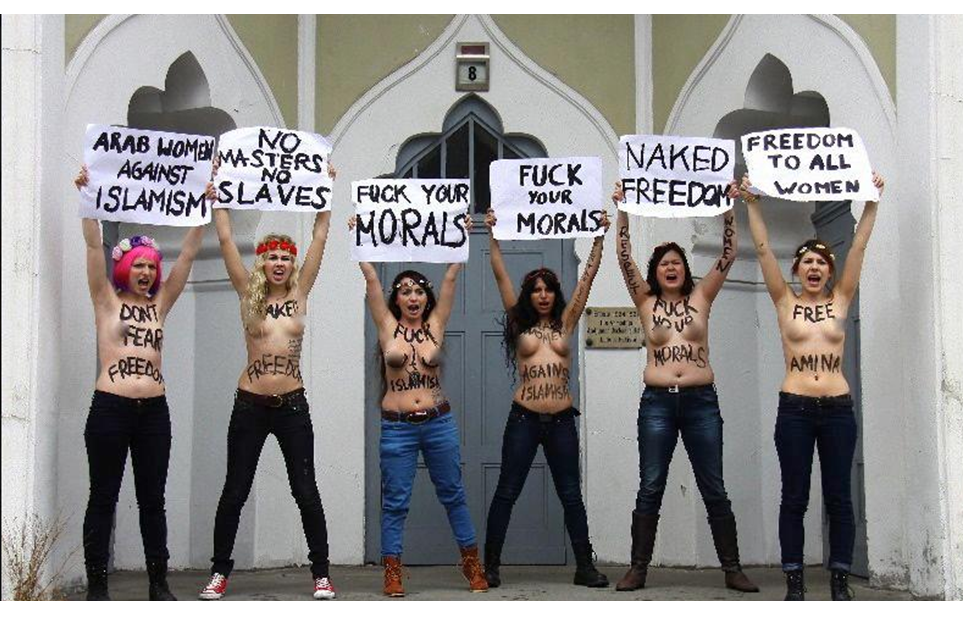 Aktivistene i Femen bedriver god gammeldags konfronterende og kompromissløs kamp for retten til å bestemme over seg selv og være et individ med egenverdi, og slagordet «Fuck your morals!» er rettet mot islamistene og salafistene som har krevd at den tunisiske feministen Amina Tyler blir straffet med døden fordi hun publiserte et toppløsbilde av seg selv, med påskriften «My body belongs to me, and is not the source of anyone’s honour».