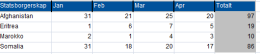 Enslige mindreårige asylsøkere, de største gruppen, januar-april 2013. Kilde: UDI