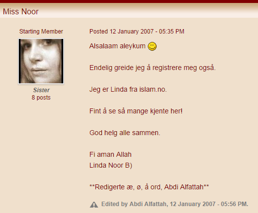 Hvor lenge han da hadde vært aktiv på islam.no er for oss ukjent, men som det fremkommer av bilde 1 er han oppdatert med nærmere 2.600 postinger.
