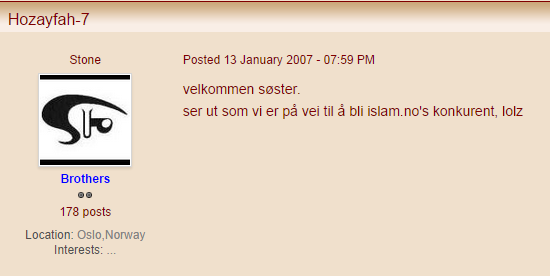 Det er i så fall en farlig vei å gå. Det tas del i et forum en ikke vet hva er, og som i tillegg kunne oppfattes som en konkurrent til islam.no, hvilket ikke synes å bekymre: