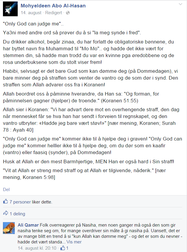 Allerede i 2007 merket jeg meg det islamistiske tankegodset hos ledende figurer i MSS. Nå kan jeg altså konstatere at denne gruppen – blant så mange andre her i landet – sprer en ideologi som skyver unge ut av det norske verdifellesskapet.