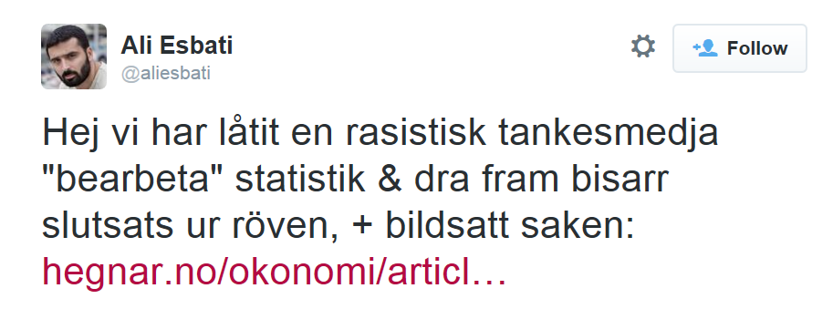 Saken han refererer til er Finansavisens avsløringer av innvandringens kostnader, der en artikkel fra 2014, som ikke hadde noe med HRS å gjøre. Igjen: bare for ordens skyld.