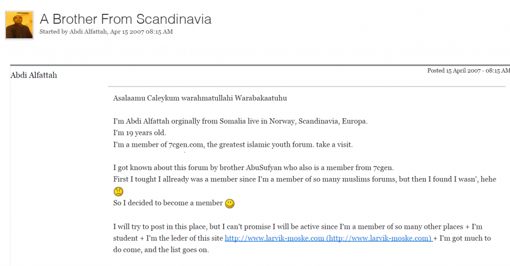Her er alle tre i samtale på Basims forum: Mohyeldeen (med dekknavn Thonnourain), Westgateterroristen Dhuhulow (med dekknavn Abdi Alfattah) og Ghozlan (uten dekknavn). Det er også her Ghozlan råder Mohyeldeen til å spørre sin far, «den store shaykhen», om råd angående islam.