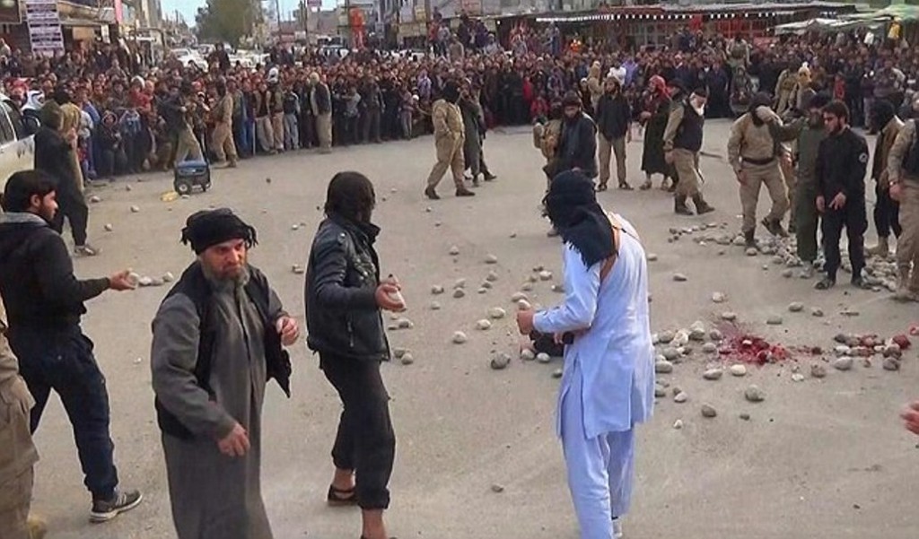 Den islamske staten steiner et kjærestepar. Det er forbudt å bruke for stor eller for liten stein. Den skal etter loven være en neve stor, akkurat som Iran også har kopiert Muhammeds straffemetode.