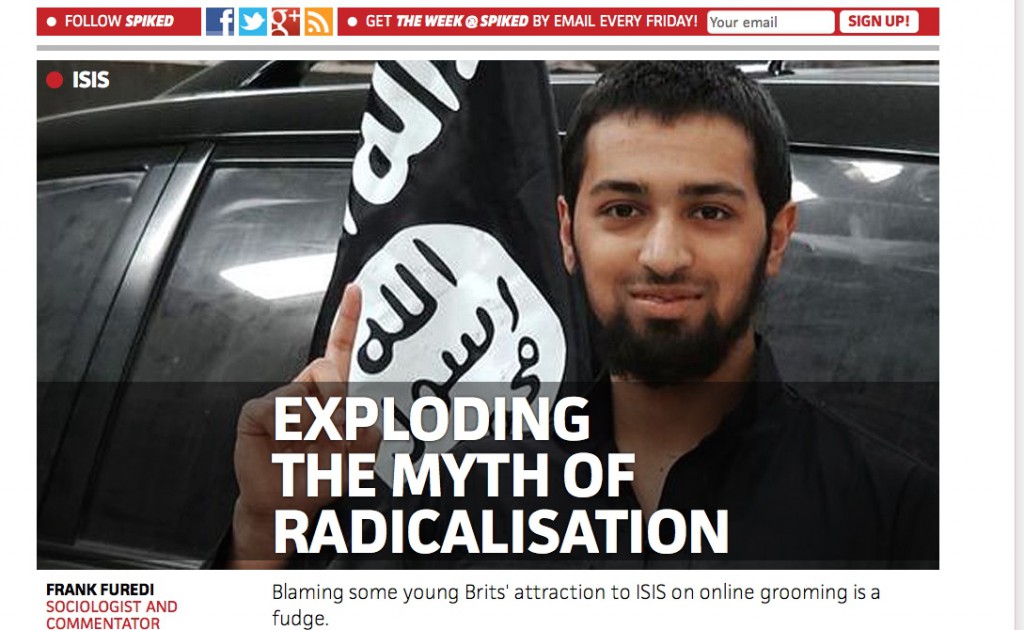 Furedi mener at avvisningen av det omgivende samfunns verdier og livsstil skjer først og at de unge deretter frivillig oppsøker ekstremistiske nettsider.