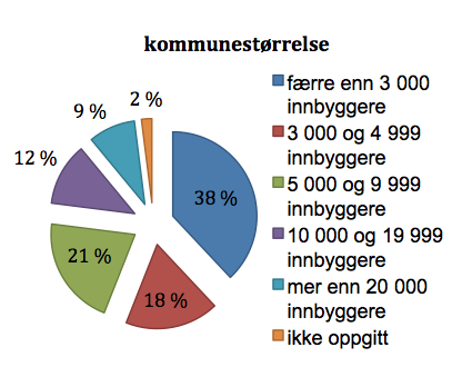 Flesteparten, 38 prosent, av kommunene i undersøkelsen hadde mindre enn 3.000 innbygger, mens 9 prosent hadde over 20.000 innbyggere. Se fordeling i figur.