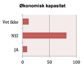 Selv om viljen til å ta imot flere flyktninger er tilstede, så innrømmer et overveldende flertall av de samme ordførerne at egen kommune ikke har økonomisk kapasitet til å ta imot flere flyktninger. Hele 81 prosent sier at de ikke har økonomisk dekning, mens 11 prosent vet ikke.