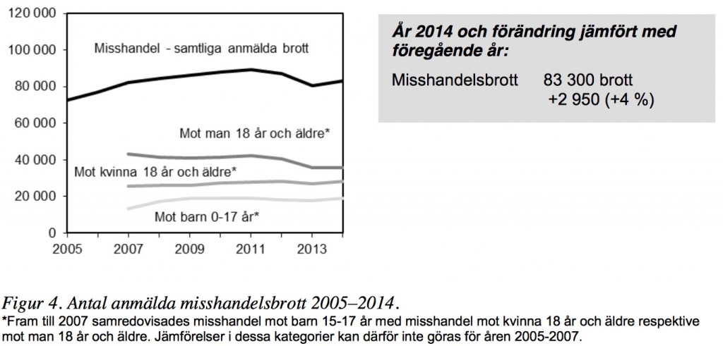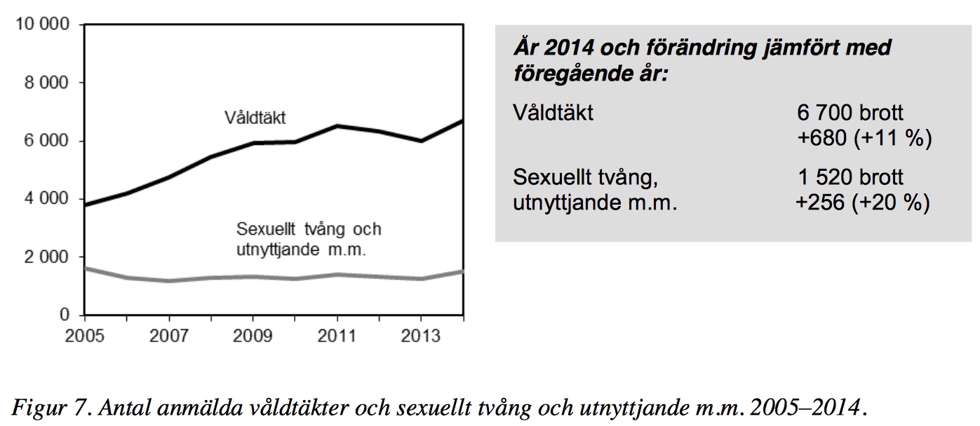 BRÅS rapport for 2014 viser da heller ingen minkende tendens når det gjelder personfarlig kriminalitet, som f.eks. vold/mishandling og voldtekt: