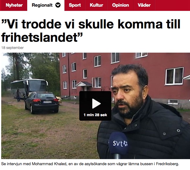 Sverige har allerede hatt flere episoder hvor migranter har nektet å gå ut av busser fordi de nekter å bosettes på asylmottak i grisgrendte strøk eller demonstrerer mot andre forhold, som at mennesker med forskjellige politiske holdninger må dele rom.