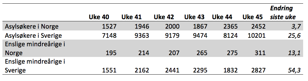 Økningen i Sverige skyldes nok at Tysklands kapasitet er sprengt. Men nå har Sverige også knelet under presset. Da kan vi antakelig bare forvente én ting – de finner veien til Norge.