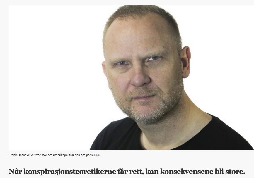 Smak litt først på «når konspirasjonsteoretikerne får rett, kan konsekvensene bli store». Men slik jeg leser Frank Rossavik handler hans innlegg handler om noe helt annet.