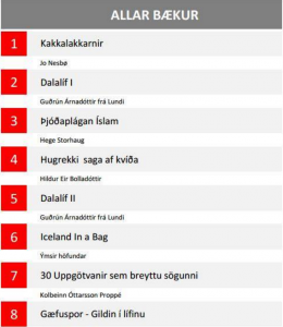 Nummer tre over alle solgte bøker i Island, nummer 1 på generell litteratur.
