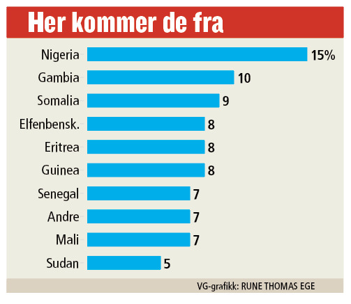 Men tilbake til Egelands påstand – stikk i strid med sin danske kollega – om at den største gruppen som flykter er krigsflyktninger fra Syria, Irak, Afghanistan og Nigeria. Tallene sier noe annet og det er en glede å kunne konstatere at jeg denne gangen kunne finne dem i VG.