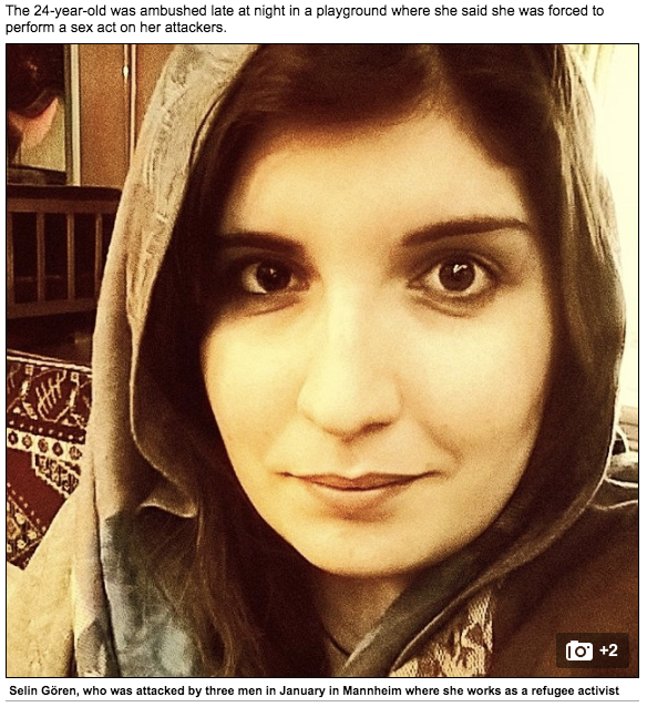 Den venstreorienterte politikeren Selin Goren (24), talsperson for ungdomsbevegelsen Solid, ble angrepet av tre menn i januar i byen Mannheim i Tyskland og tvunget til å utføre oralsex. Etter voldtekten gikk hun til politiet, men der oppgav hun uriktige opplysninger om voldtektsmennene. Hun hevdet at hun bare var blitt ranet og at overgriperne snakket tysk. I realiteten snakket de arabisk eller farsi.
