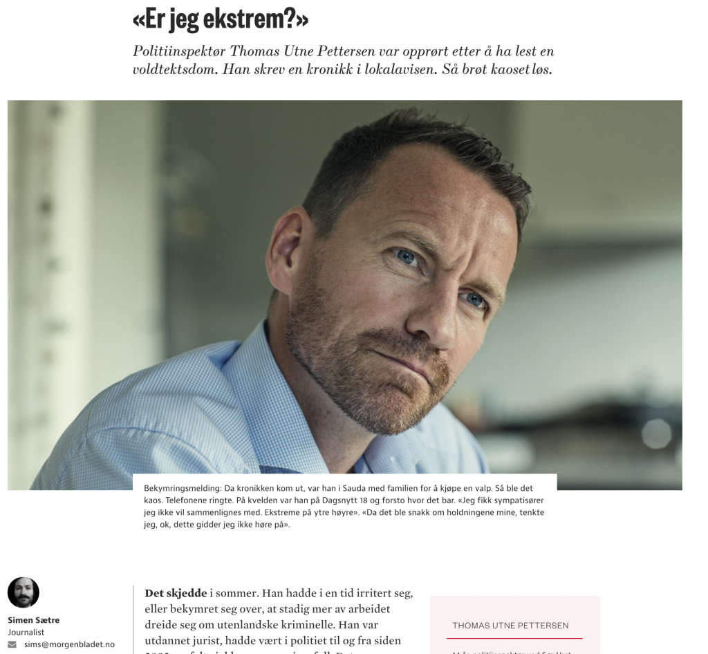 I ett ellers godt – og betimelig – intervju med politiinspektør Thomas Utne Pettersen i dagens Morgenbladet, gjør journalist Simen Sætre en typisk kardinalfeil, men han skjønner det ikke selv. Det kommer jeg tilbake til.