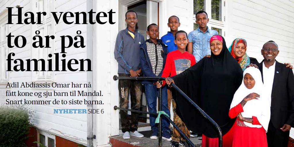 Siste ut til å nyte godt av denne ordningen, er Adil A. Omar fra Somalia. Etter to år i Mandal har han nylig fått kone nummer en og deres syv barn på familiegjenforening. Nå er det familiesplitting som står på hans agenda.