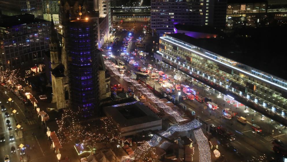 Minst 12 mennesker ble drept og 48 skadet da en polskregistrert trailer med avslåtte frontlykter kjørte rett inn i folkemengden på det tradisjonelle julemarkedet på Breitscheidplatz nær den travle handlegaten Kurfürstendamm i Vest-Berlin. Julemarkedet ved Kaiser Wilhelms minnekirke er svært populært og besøkes av mer enn to millioner mennesker årlig.