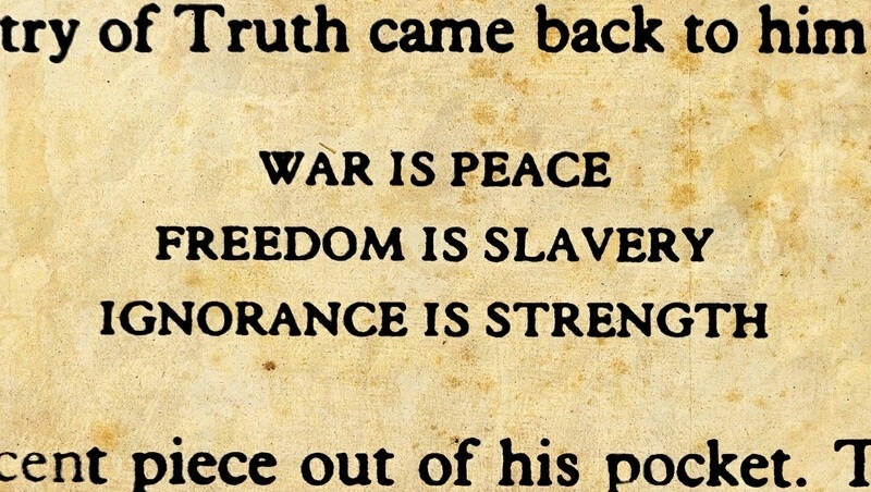 Han mener at selv George Orwell (1903-1950), som skrev mye om forfallet i og manipuleringen av det offisielle språket ,ville blitt sjokkert over betingelsene og tonen i årets politiske debatter i USA og Storbritannia. I Orwells kjente essay Politikk og det engelske språket (1946), skriver han at «i vår tid, er politisk tale og skrift hovedsakelig et forsvar for det uforsvarlige». Forfatteren var spesielt bekymret for måten politisk retorikk ble benyttet til å tilsløre virkeligheten.