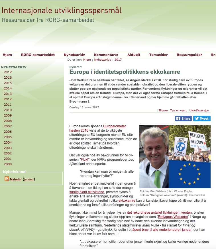 – Det flerkulturelle samfunn har feilet, sa Angela Merkel i 2010. For stadig flere av Europas velgere er dét grunnen til at de vender sosialdemokratiet og den liberale eliten ryggen og slutter opp om nasjonale og populistiske partier. For verdens flyktninger og migranter vil det svekke håpet om en fremtid i Europa, men det vil også forme Europas flerkulturelle fremtid. I et splittet Europa står slaget denne uka i Nederland og her hjemme går debatten etter Brochmann 2., skriver redaktør for nettsiden Rorg.no Arnfinn Nygaard.