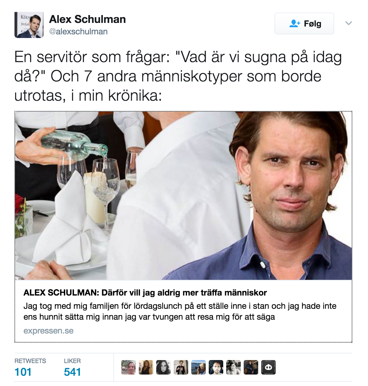 Vranglesningen til Schulman kunne en kanskje forstå om det ikke var for at Schulman selv bruker akkurat samme virkemidler. På twitter var han nylig klar på en det finne en del menneskegrupper, åtte i tallet faktisk, som bør utryddes: