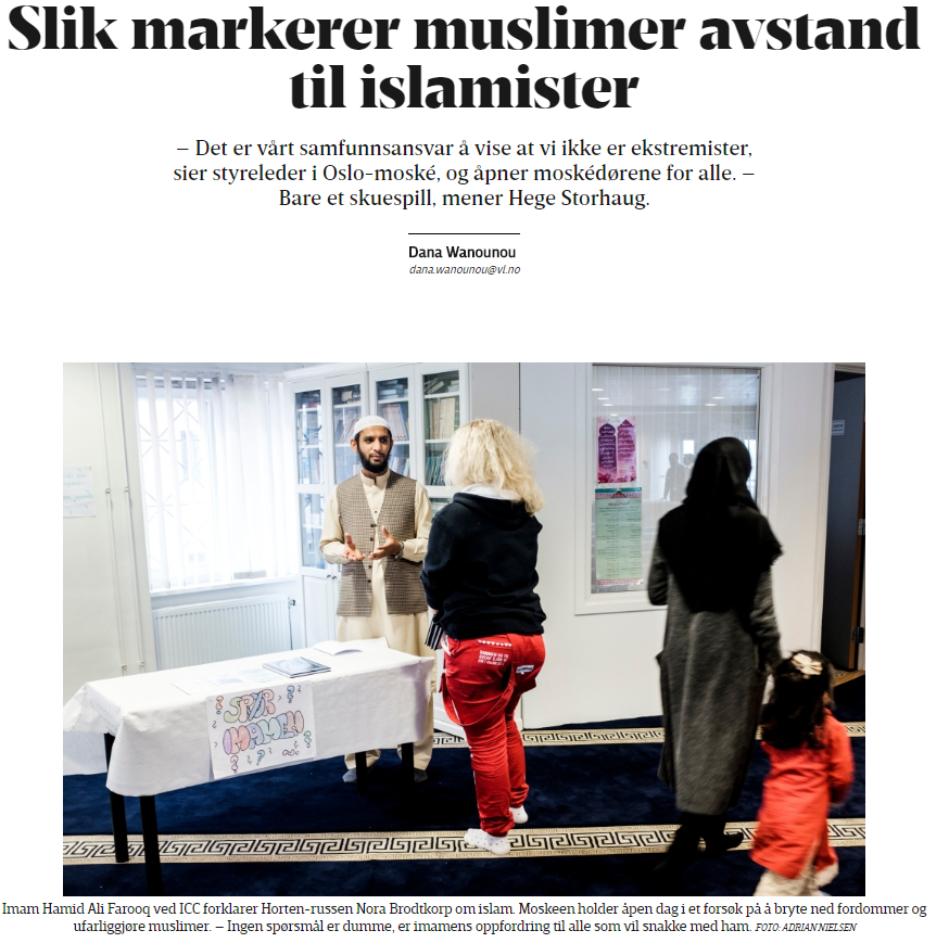 I går publiserte vi kritikk av Vårt Land for lemfeldig omgang med faktiske forhold rundt den totalitære moskeen Islamic Cultural Centre (ICC). Kl 18.30 (ca.) i kveld blir det debatt i P2, også sendt på NRK2.