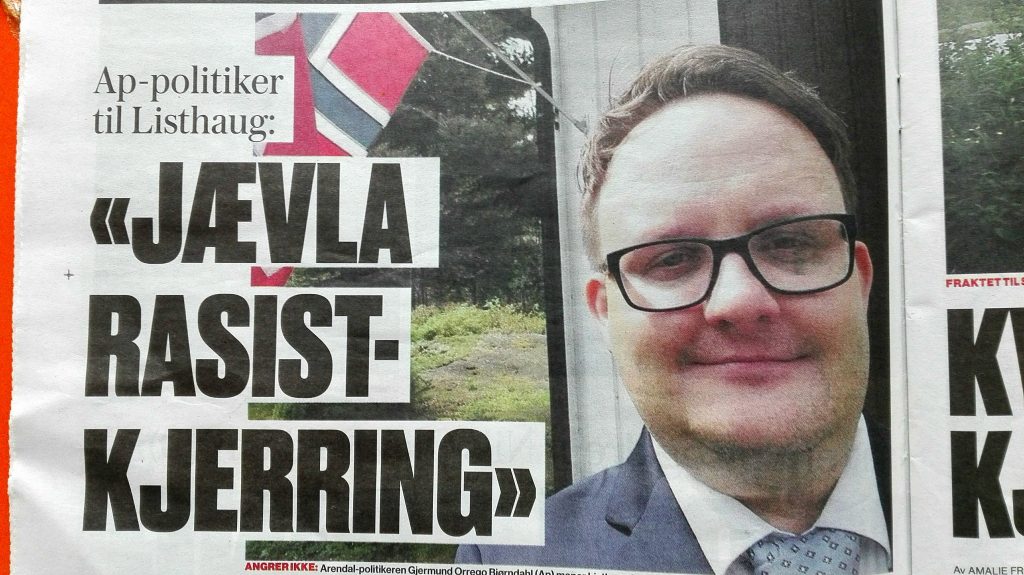 Arendalspolitiker for Arbeiderpartiet, Gjermund Orrego Bjørndahl, kalte Sylvi Listhaug (Frp) for «jævla rasistkjerring».