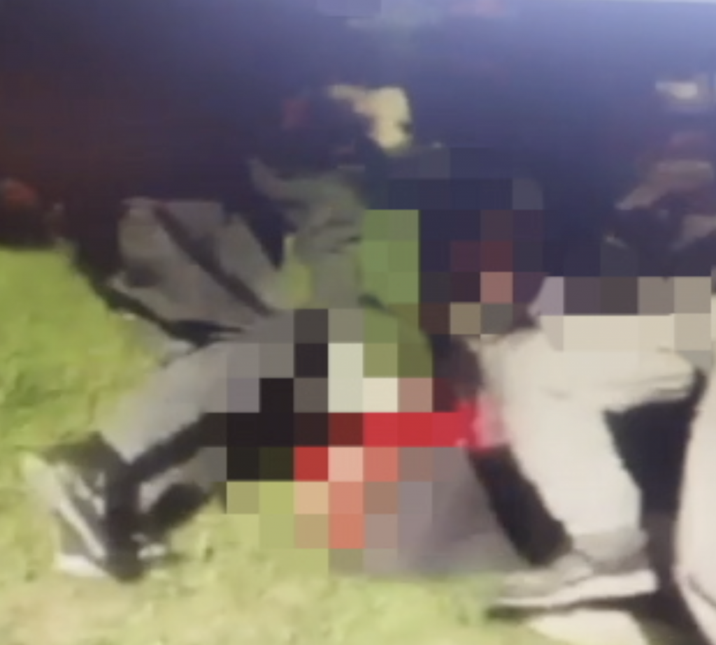 Vi har også valgt å kutte filmens slutt. Det handler om at en mann kommer løpende og som går svært profesjonelt inn i kampen. Målbevisst søker han offerets hode og slår til dem som sparker. Deretter beskytter han offerets hode med egen kropp. Så drar han opp noe fra bukselommen som vi antar at er et politiskilt, og alle overgriperne løper raskt vekk. Vi har ingen interesse å bidra til at denne eventuelle politimannens identitet blir kjent.
