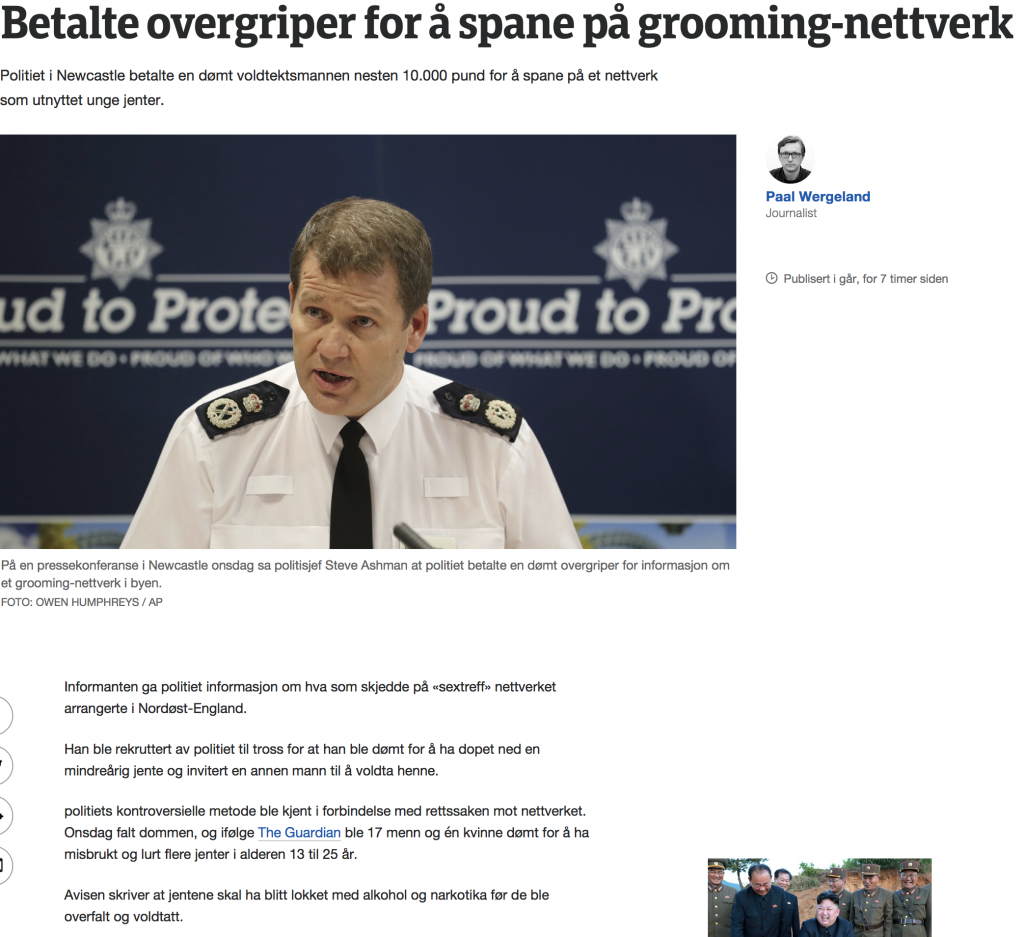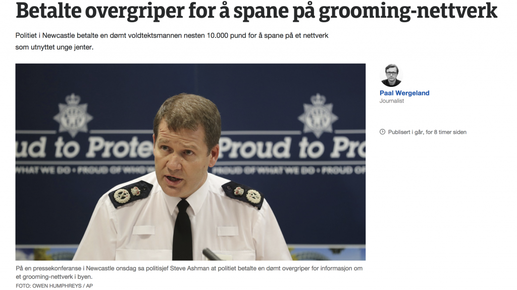 I den lille byen Newcastle, med 293 000 innbyggere, er et større nettverk blitt rullet opp siden 2013. 278 ofre er identifisert og 461 menn har blitt arrestert i løpet av etterforskningen som fortsatt pågår. I går falt dommen over ytterligere 18 personer. Fra før er 75 personer dømt i forbindelse med samme sak. Så godt som alle har bakgrunn fra Pakistan, Bangladesh, India, Iran, Irak og Tyrkia.
