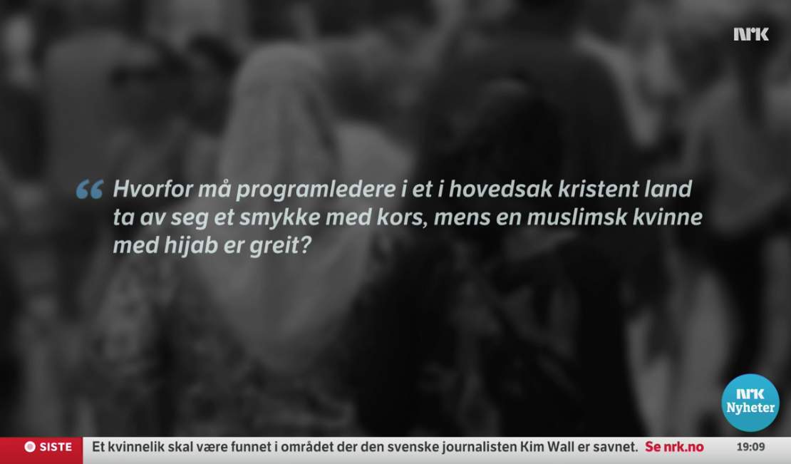 «Stemmer det som står på Facebook at det ikke er lov for ansatte i NRK å bruke kors, mens det er lov for muslimer å bruke hikab (sic)?»