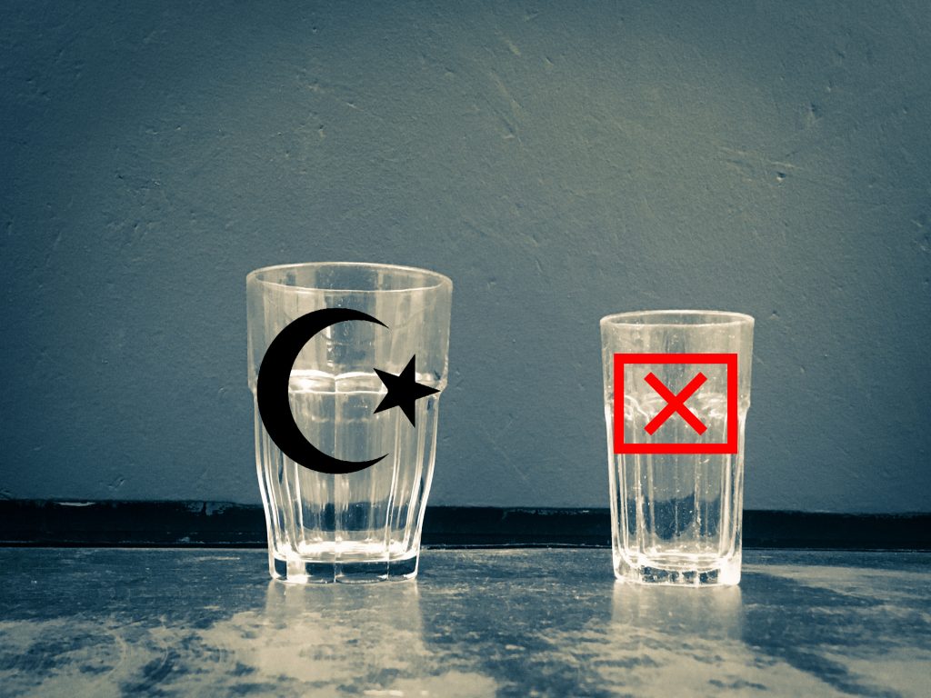Tillatt og forbudt – for muslimer, og dermed også for ikke-muslimer, bare motsatt «skål». Illustrasjon: rights.no