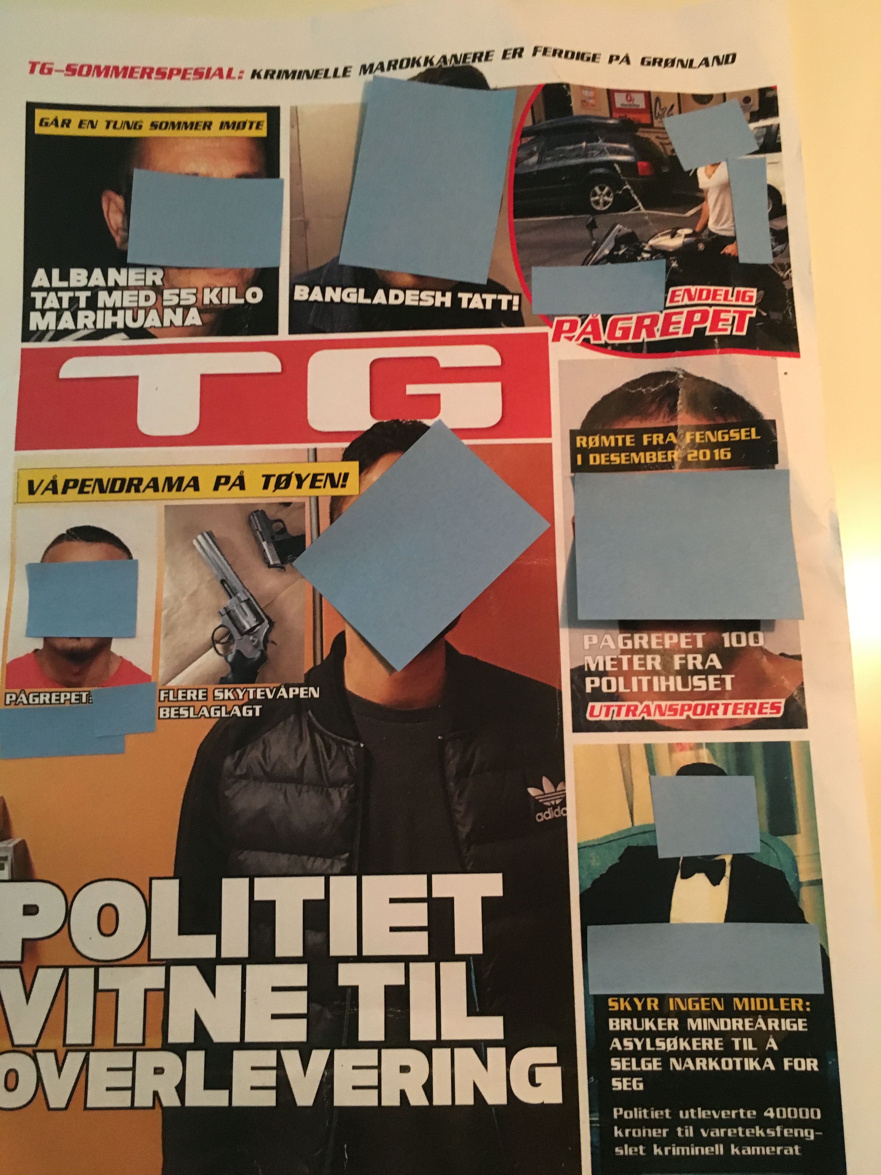 I TG, og da er forsiden unntatt, er det publisert ca. 55 bilder av kriminelle (noen er det flere bilder av), der det kun er én etnisk norsk. Alle de andre har innvandrerbakgrunn. Det finnes en egen side kalt «Topplisten: Grønlands mest aktive gateselgere», hvor de 12 mest aktive narkotikaselgerne er avbildet, inkludert navn. Her kommer den ene nordmannen inn.