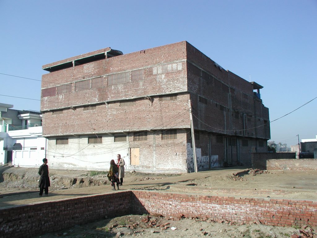 En av koranskolene for jenter i Pakistan som vi besøkte i 2004. Skolen kan ikke betegnes som annet enn et fengsel, og jentene som var der lignet da også mest på fanger. I forgrunnen ser vi Halvor Tjønn (da journalist i Aftenposten) og meg med ryggen til. Til venstre står en av vaktene.