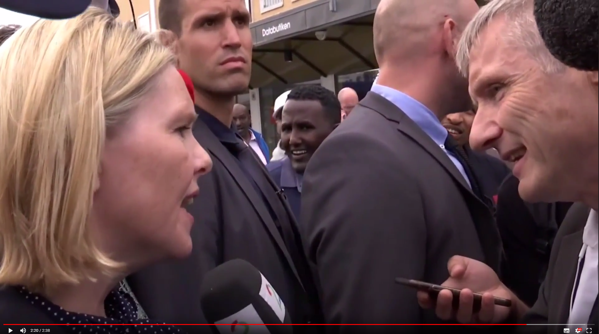 Her ser vi TV2s Finn-Ove Hågensen i hånende og arrogante ordlag «konfrontere» Listhaug med det «kaoset» hun laget (sic) i Rinkeby, mens det vitterlig var norske journalister som løp rundt som kaklende høns for å prøve å knuse Listhaug politisk.