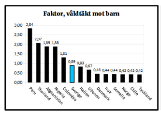 Vektingen for voldtekt mot barn viser at svenske menn rykker oppover på listen, og også norske menn er kommet med (faksimile fra rapporten, side 21).