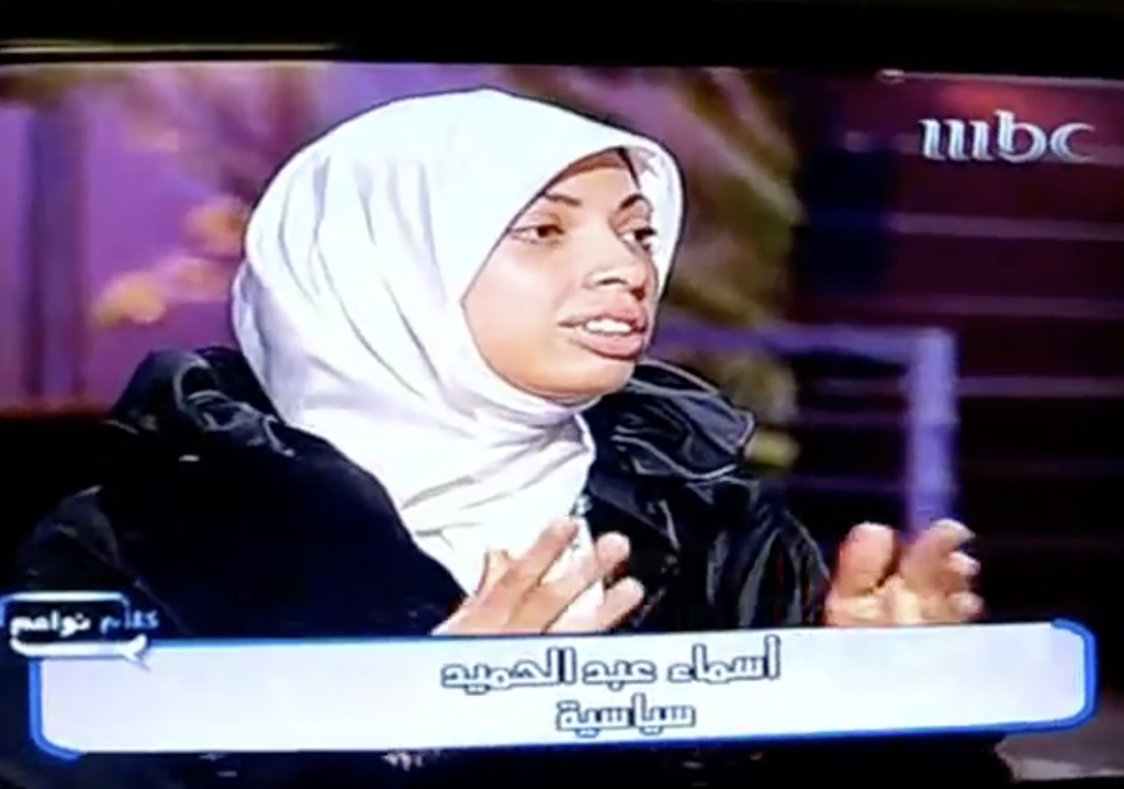 (Forsidebilde: Fra YouTube der Asmaa Abdol-Hamid blir tildelt pris av Middle East Broadcasting Center, MBC)
