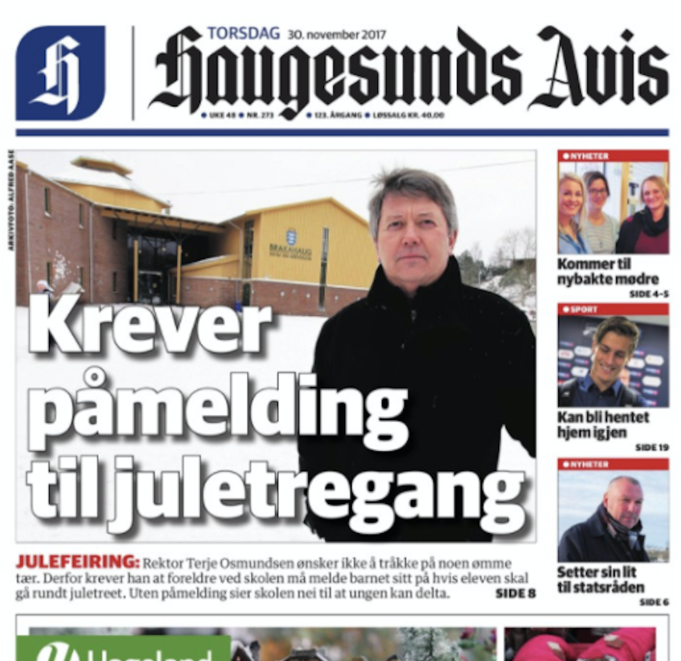 Slik ble saken publisert i Haugesund Avis. Men da reagerte rektor Osmundsen. For det var visst ikke slik at det skulle være noen «påmelding». Avisen fulgte opp med en oppdatering om at det skal være mulighet for avmelding.