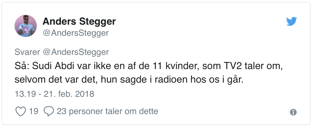 Programleder Anders Stegger i DR måtte i går rykke ut med denne noe pinlige Twitter-meldingen.