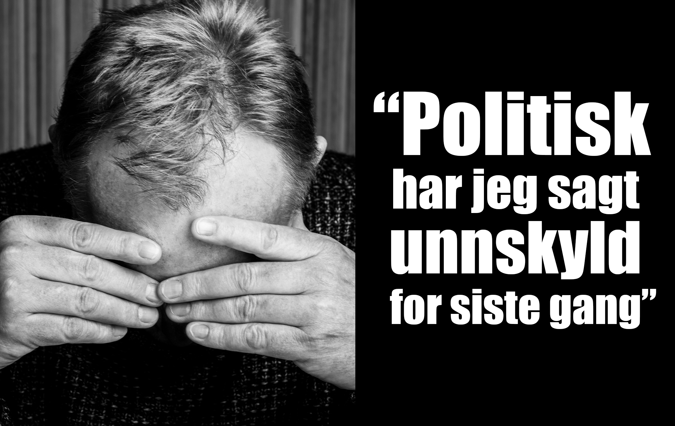 – De fikk henne ikke i kne. Og det er jo det verste journalistkorpset vet, som springer i flokk hele tiden, og daglig driver med et slags demonstrasjontog, for å jakte. Se på Olemic Thomassen (stortingspresidenten som måtte gå av, vår anm.), maken til personforfølgelse! Jeg var med på de første vedtakene i Stortinget med dette byggeprosjektet, han som var president da, sitter nå som leder i Kontroll- og konstitusjonskomiteen… Men jakten på person, ord som blir brukt og å definere hva som «egentlig er ment», har utviklet seg skrekkelig skjevt. Hvem orker? Det å bli karakterisert som en drittsekk hver eneste dag, fordi at man er uenig politisk. Derfor har jeg også bestemt meg for at jeg politisk har sagt unnskyld for siste gang.
