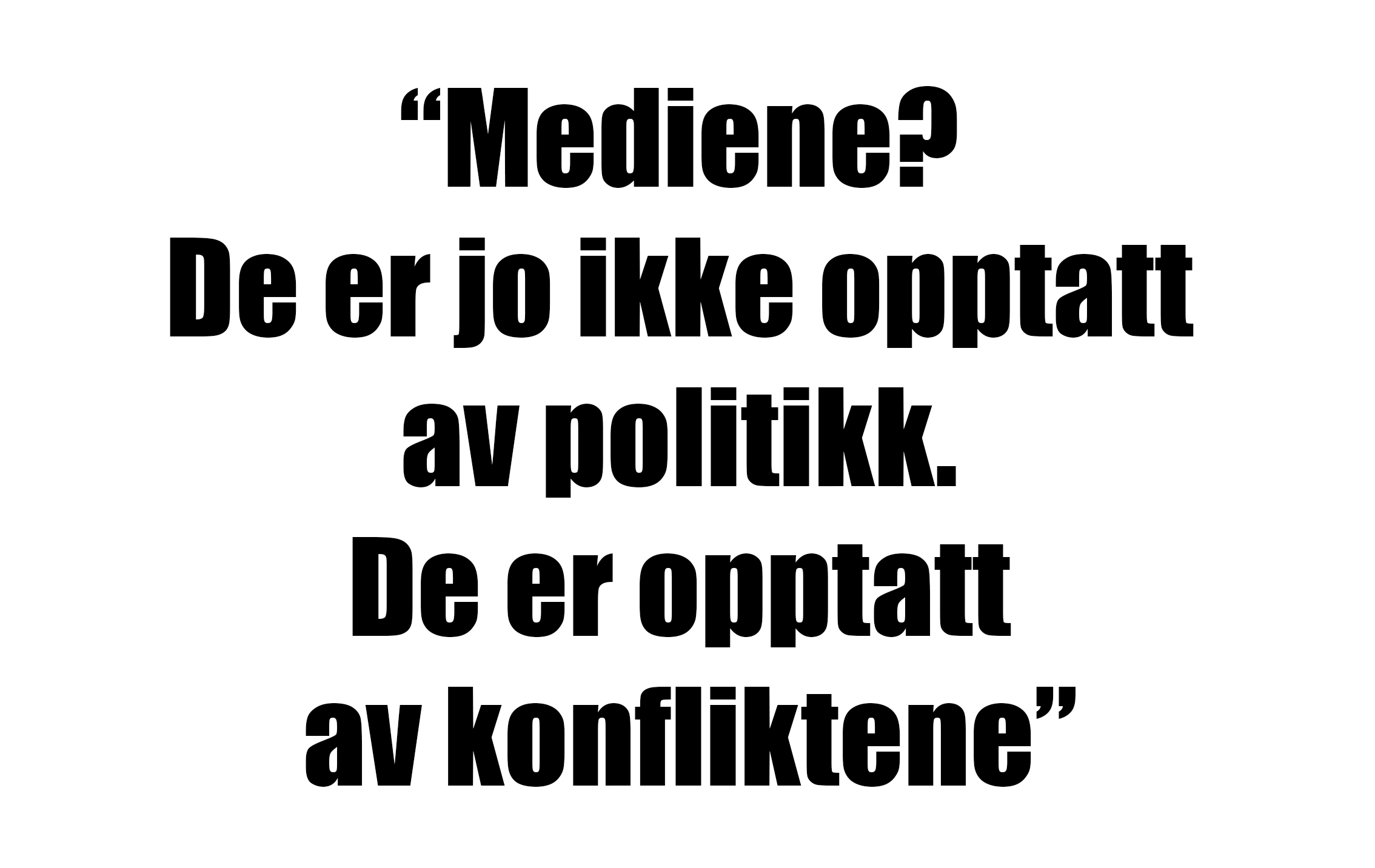 – Mediene? De er jo ikke opptatt av politikk. De er opptatt av konfliktene.