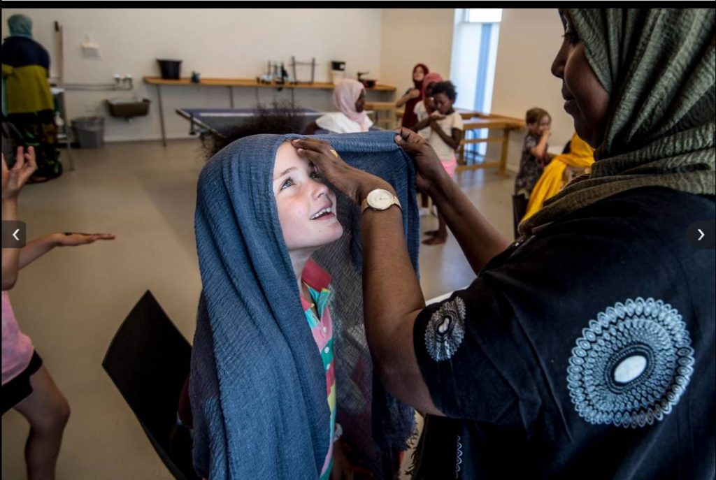 - Muslimske jenter fra parallellsamfunnet Trekanten i Holsterbro drar til Holsterbro Friskole og trener på å ta av seg hijaben.