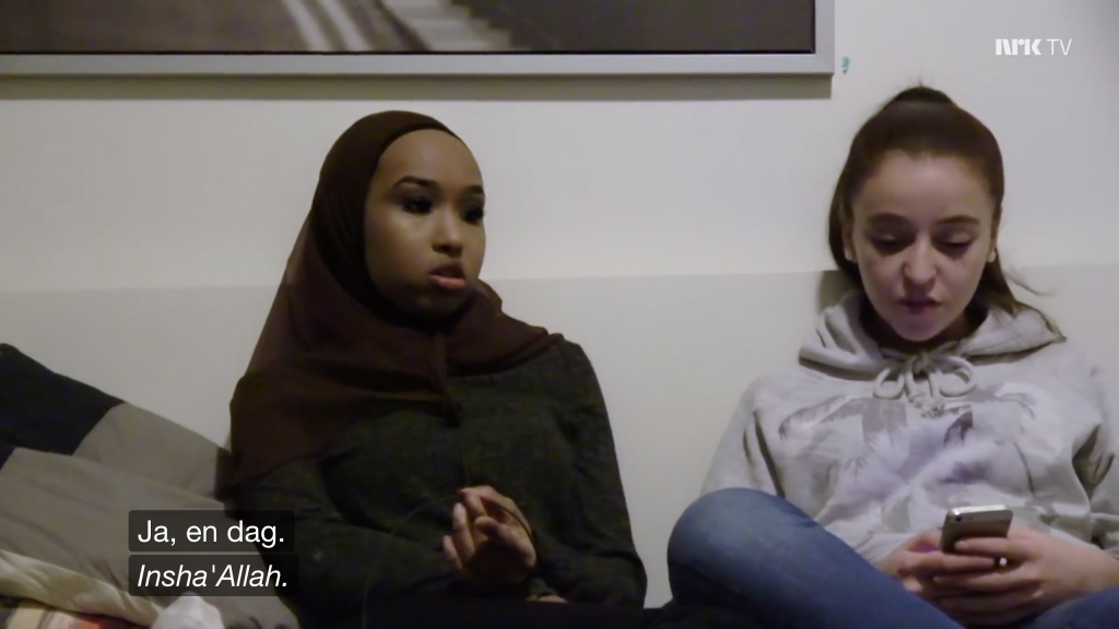 Og den somaliske jenta mener det vil skje, at nikaben en dag er på sin norske venninnes hode – hvis allah vil det.